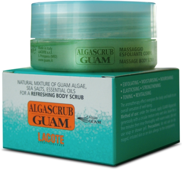 GUAM Algascrub Algensalz Körperpeeling Dose, Probiergröße Produkt: 85 g Dose Algensalz-Körperpeeling Algascrub mit GUAM-Algen, Meersalz, ätherischen Ölen und Pflanzenextrakten Ideal zum Probieren, zum Verschenken und für unterwegs auf Reisen Lieferbarkeit: sofort lieferbar Wirkstoffe: GUAM Meeresalgen, Meersalz, Pflanzenöl-Mischung (Sonnenblumenöl, Jojobaöl, Weizenkeimöl, Primelöl, Süsses Mandelöl), ätherische Öle 1% (Minze, Zitrone, Rosmarin) Reines Naturprodukt ohne Farbstoffe. Keine Parabene, keine Silikone, keine PEGs. Kein Arzneimittel. Keine Nebenwirkungen. Beschreibung: Dieses wunderbar duftende Körperpeeling, bestehend aus einer natürlichen Mischung von GUAM Meersalgen, Meersalz, ätherischen Ölen und Pflanzenextrakten, verleiht Wohlbefinden und eine frische Haut. Ein bis zwei mal wöchentlich angewendet, pflegt dieses Peeling die Haut und macht sie samtig weich. Es fördert die Durchblutung der Haut, regt den Kreislauf an, entfernt sanft kleine Hautschuppen und bereitet die Haut optimal für die Algenfango-Anwendung vor. Die natürlichen Öle haben einen aromatherapeutischen, stimmungsaufhellenden Effekt. Anwendungsbereiche/ Problemzonen: Gesamter Körper Anwendung: Das Peeling auf die feuchte Haut auftragen und mit kreisenden Bewegungen einmassieren. Zwei bis drei Minuten einwirken lassen, anschließend mit klarem Wasser abspülen. Danach keine Duschlotion verwenden.